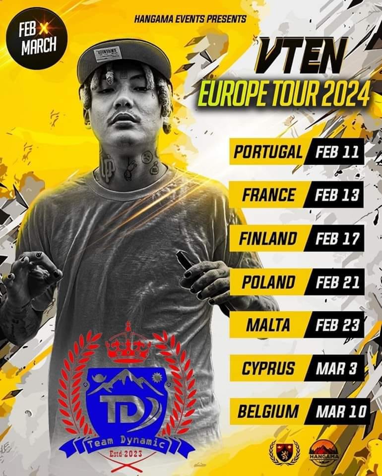 र्याप गायक समीर घिसिङ, आफ्नो स्टेज नाम V-TEN द्वारा प्रख्यात,छन अहिले V-TEN 2024 को फेब्रुअरी र मार्च महिनाको युरोप भ्रमणको लागि तयार छन्। V-TEN ले यूरोपको ७ वटा शहरहरु मा प्रस्तुत दिने छ। भ्रमणको लागि पहिलो स्थान पोर्चुगलमा ११ फेब्रुअरी २०२४ मा छ। त्यसैगरी, १० मार्च २०२४ मा बेल्जियममा आफ्नो यूरोप भ्रमण समाप्त गरिने छ ।