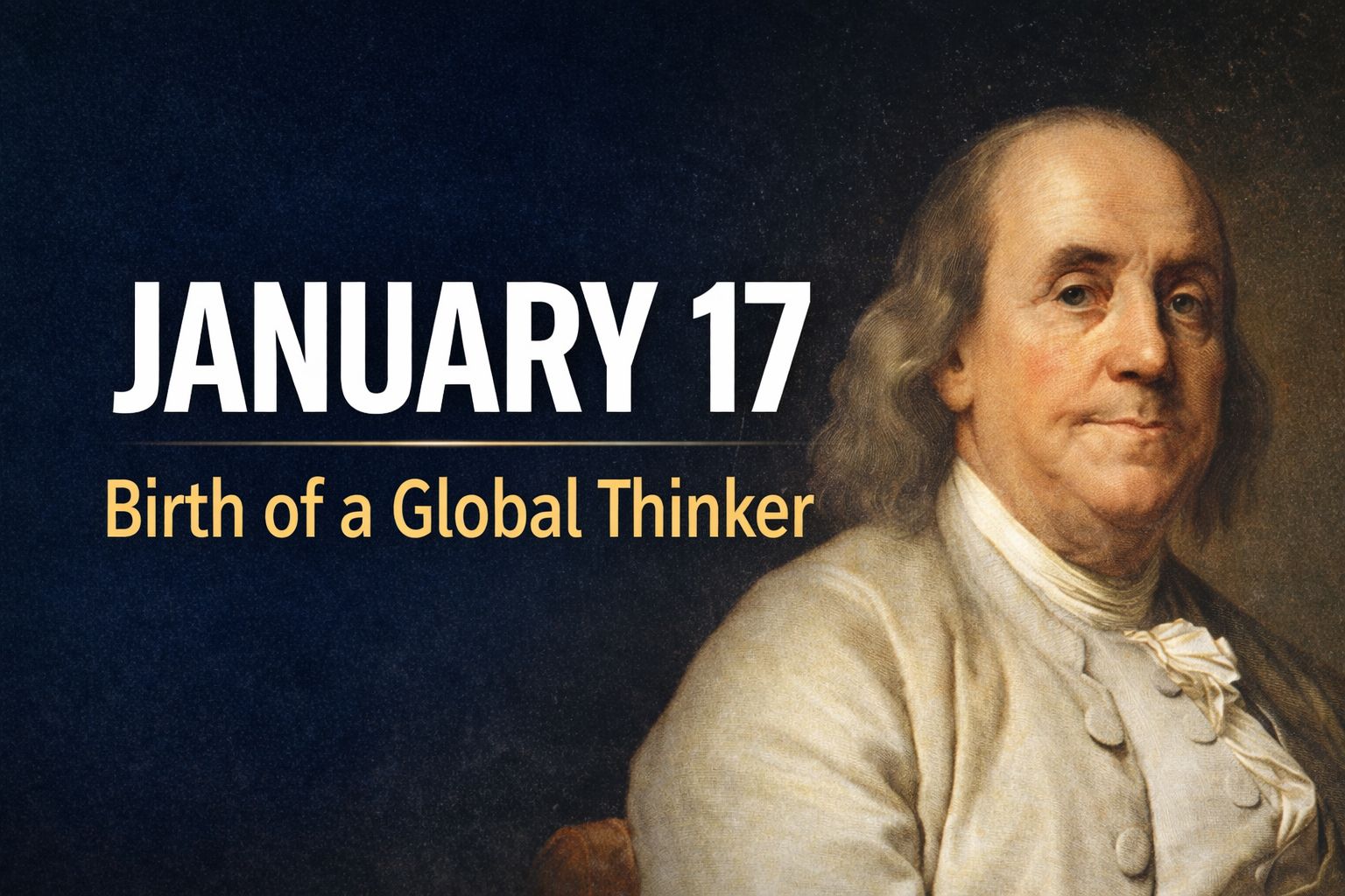 आज मिति जनवरी १७। विश्व इतिहासमा यो दिनलाई विशेष महत्वका साथ स्मरण गरिन्छ। आजकै दिन सन् १७०६ मा आधुनिक विज्ञान, शिक्षा र लोकतान्त्रिक सोचको विकासमा उल्लेखनीय योगदान पुर्याउने महान् व्यक्तित्व Benjamin Franklin जन्मिएका थिए।